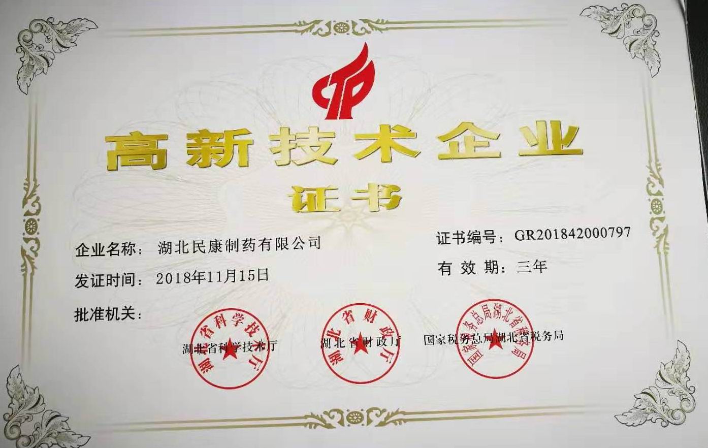 公司被湖北省科技廳認定為“湖北省高新技術(shù)企業(yè)”。